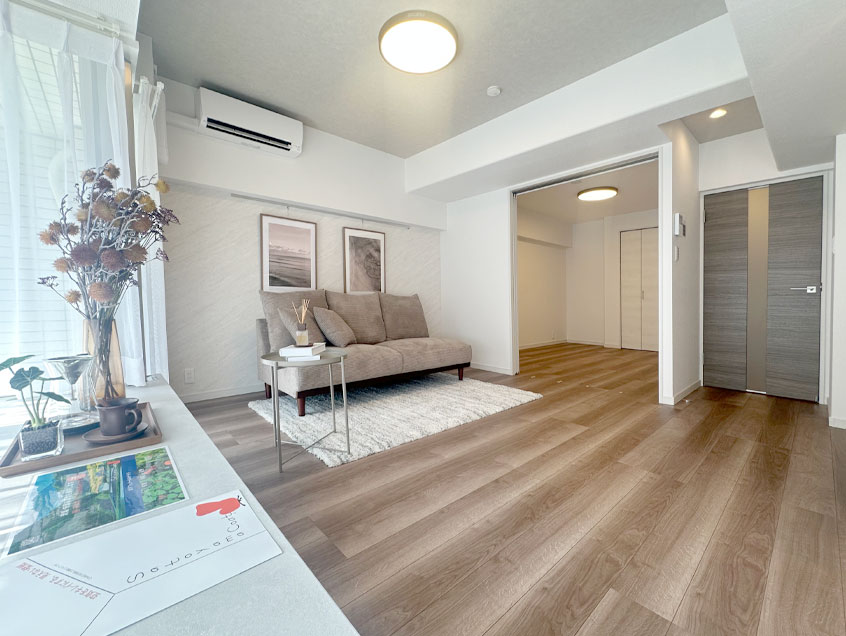 【成約済】上大岡駅徒歩12分のフルリノベ済ペット可3LDK!2面バルコニーで通風良好、家族みんながリラックスしてくつろげる広々としたLDK約15帖!