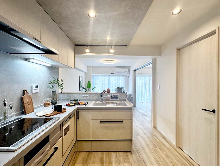 IHコンロ、浄水器付き水栓、食洗機を完備したシステムキッチン