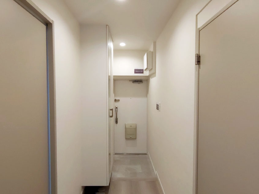 人感センサー付き照明が明るく出迎えてくれる玄関