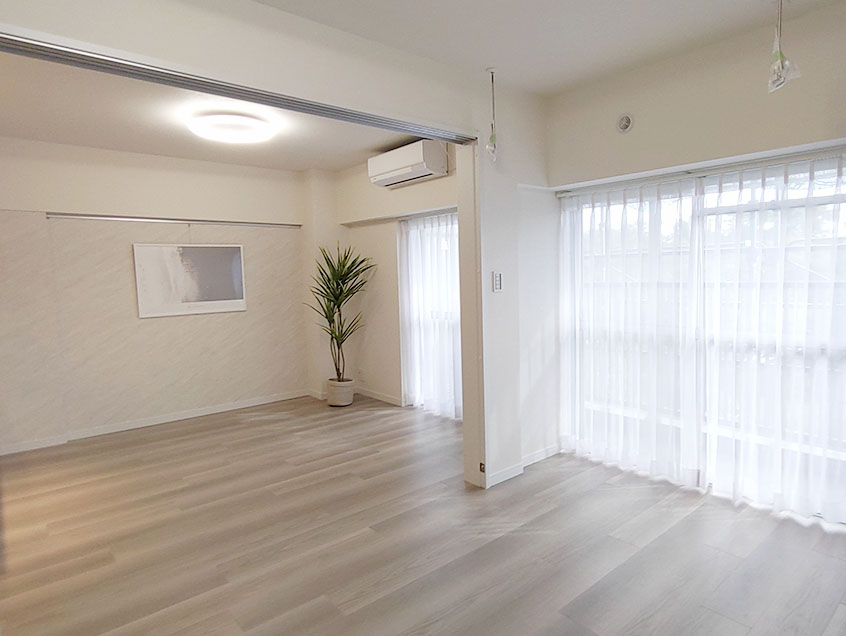 - 給水・給湯配管新規交換 ユニットバス新規交換 システムキッチン新規交換 洗面化粧台新規交換 トイレ新規交換 防水パン新規交換 給湯器新規交換 建具新規交換 下駄箱新規交換 クロス新規張替 網戸新規張替 カーテンレール新規交換 レースカーテン新規取付 洗浄便座新規取付 洗濯水栓新規交換 木部塗装 照明器具新規交換 煙感知器新規取付 分電盤新規交換 スイッチ・コンセント新規交換 人感センサー新規取付 ハウスクリーニング フロアタイル新規張替 その他(エアコン2台設置済、ホスクリーン設置済、ピクチャーレール設置済