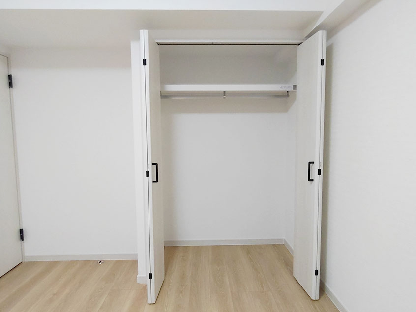 枕棚やハンガーパイプ付きのクローゼットがあります