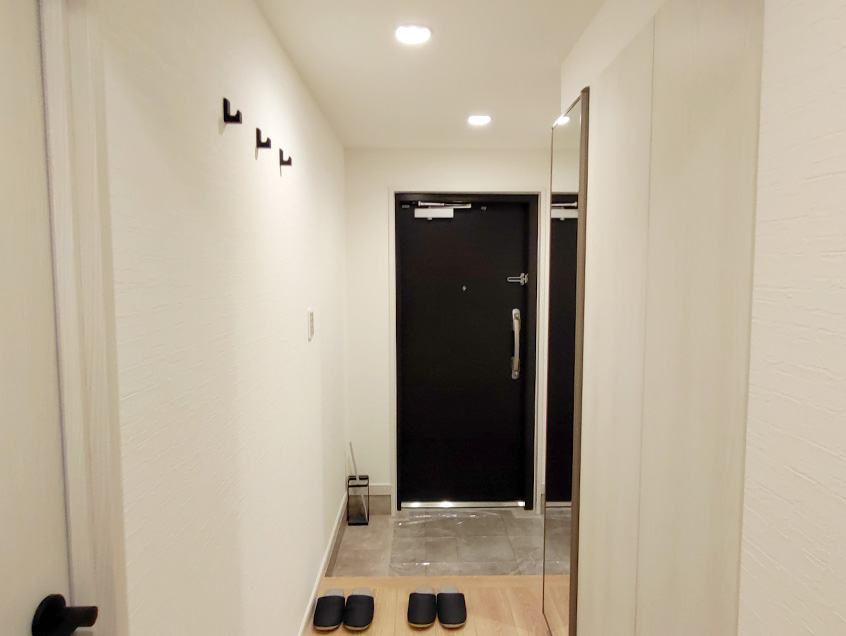 身だしなみをチェックできる全身ミラー付きシューズボックス
