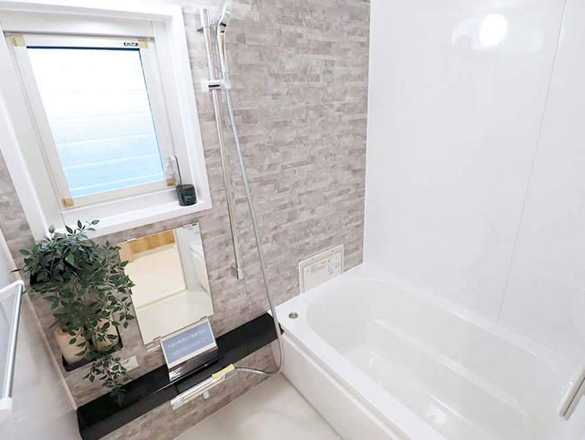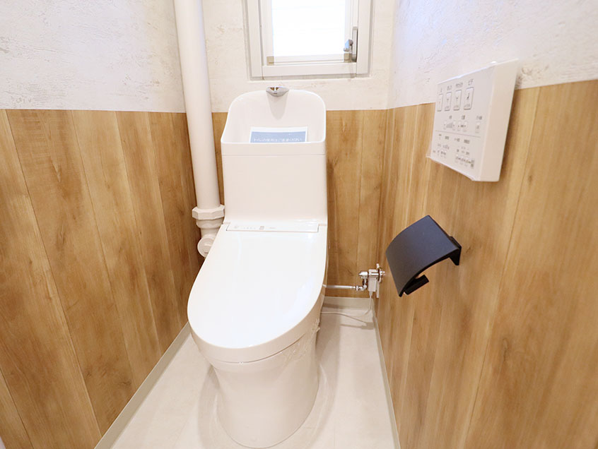 すっきりフォルムの一体型トイレ、窓付きで換気良好