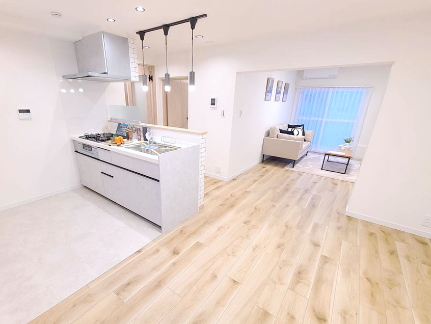 - ユニットバス新規交換 システムキッチン新規交換 洗面化粧台新規交換 トイレ新規交換 防水パン新規交換 給湯器新規交換 建具新規交換 下駄箱新規交換 クロス新規張替 網戸新規張替 カーテンレール新規交換 レースカーテン新規取付 洗濯水栓新規交換 木部塗装 照明器具新規交換 煙感知器新規取付 分電盤新規交換 スイッチ・コンセント新規交換 人感センサー新規取付 ハウスクリーニング フロアタイル新規張替 (エアコン1台設置済、コートフック設置済、ホスクリーン設置済、ピクチャーレール設置済