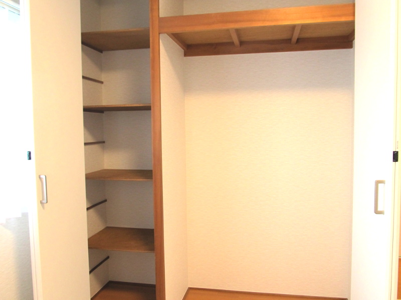 洋室には収納力のあるクローゼットと収納付き。扉を造作
