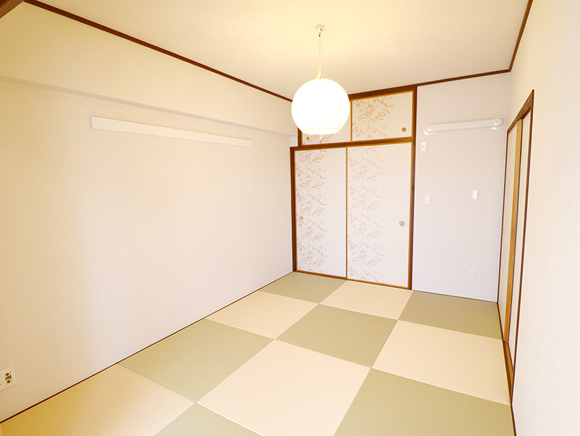 - トイレ新規交換 フローリング新規張替 クロス新規張替 畳表替 レースカーテン新規取付 木部塗装 照明器具新規交換 煙感知器新規取付 人感センサー新規取付 ハウスクリーニング フロアタイル新規張替 その他(エアコン1台設置済、コートフック設置済、ホスクリーン設置済、ピクチャーレール設置済