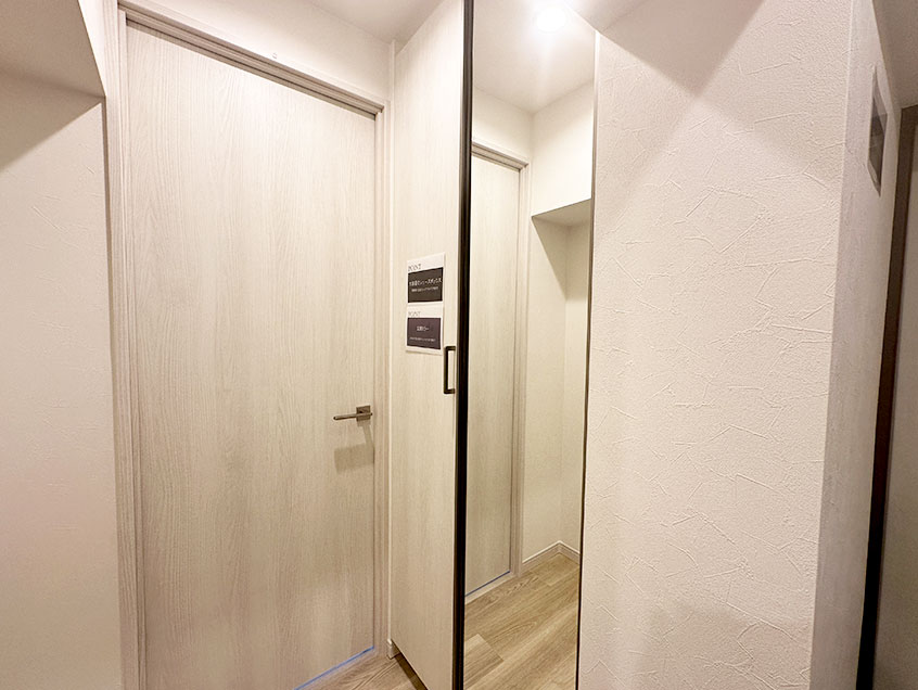 玄関横には全身ミラー付きトールサイズのシューズボックス
