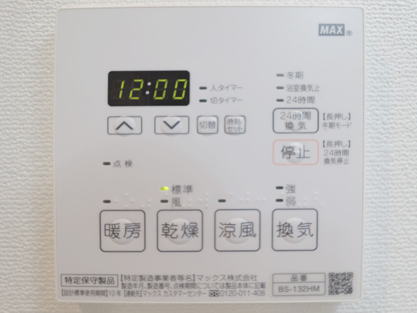 どんな天気でも洗濯物が干せる浴室換気暖房乾燥機付き
