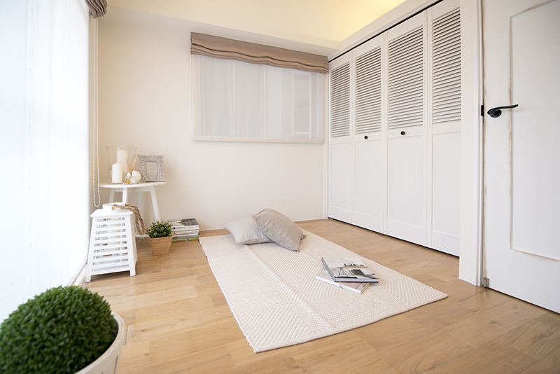 after3シングルのお客さまなので、おしゃれで落ち着き感のあるナチュナルティストのフレンチカントリーデザインを提案しました。床は無垢のクリのフローリング、家具は白を基調として、リフォームプランニングしました。また間接照明によりミニマムながら奥行きと広がりを感じるよう演出。充実した収納量を確保するように収納スペースも工夫して造作しています。