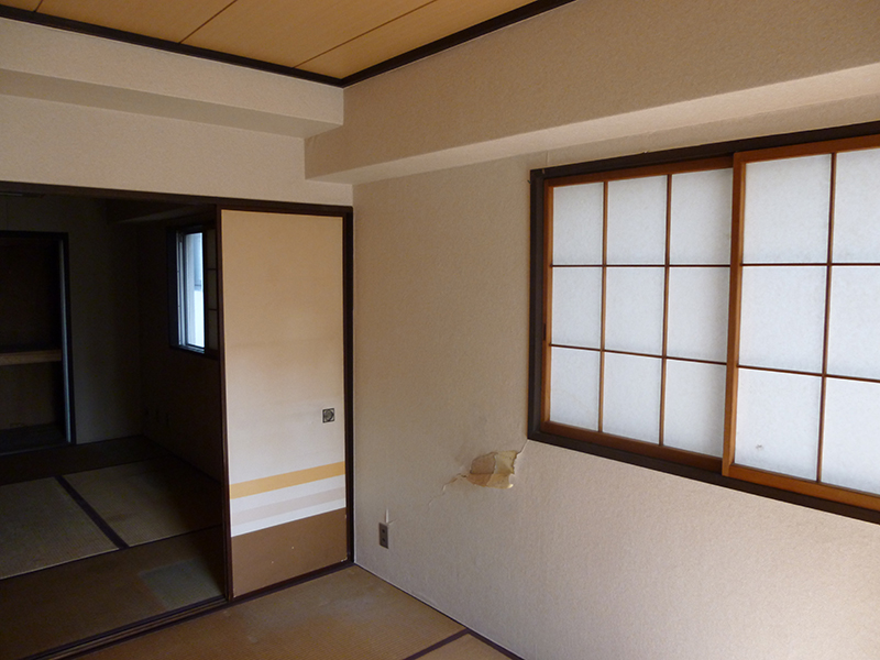 二間続きの和室。北側のお部屋は特に暗くなっていました。