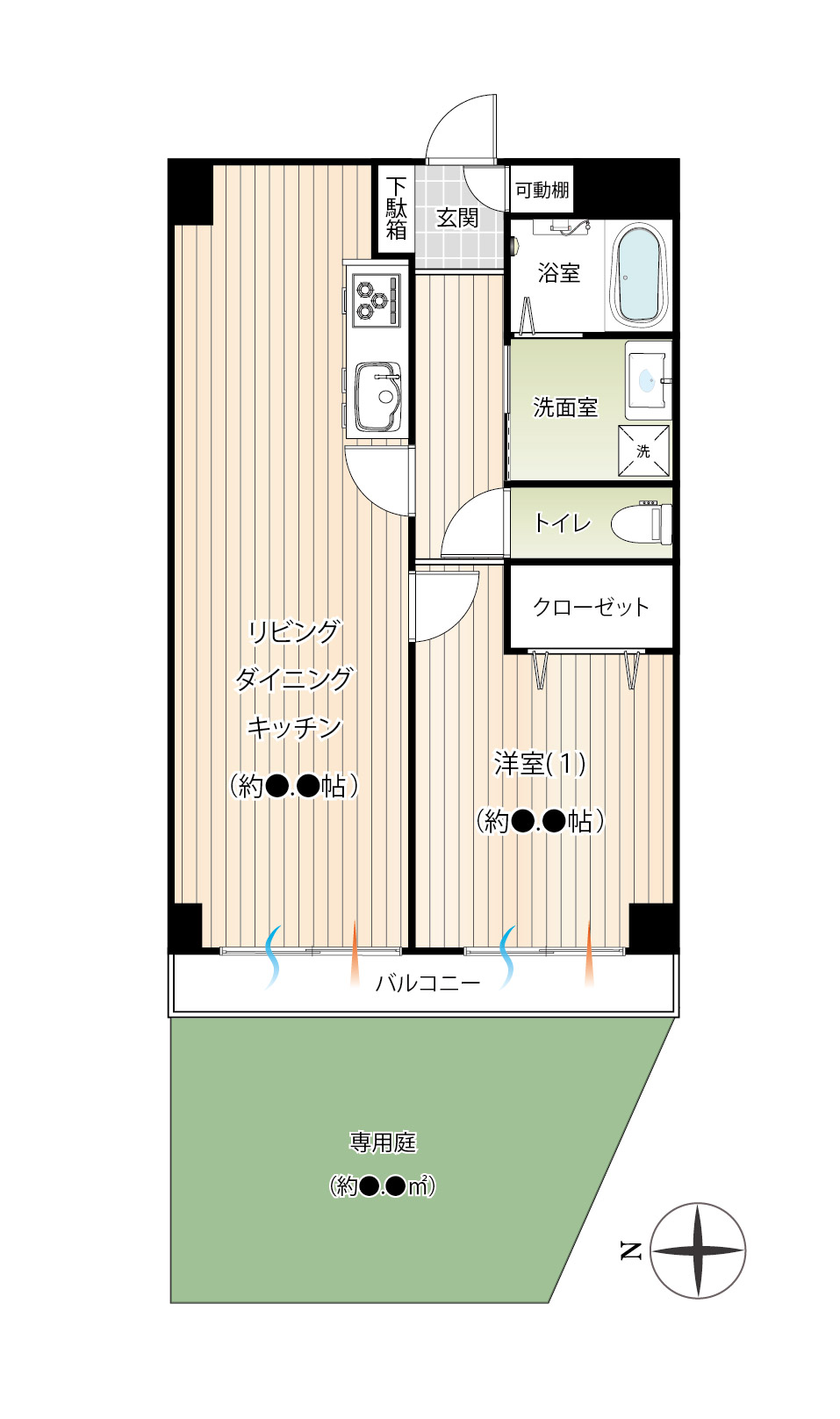 - LDK約13.0帖、洋室1約6.5帖