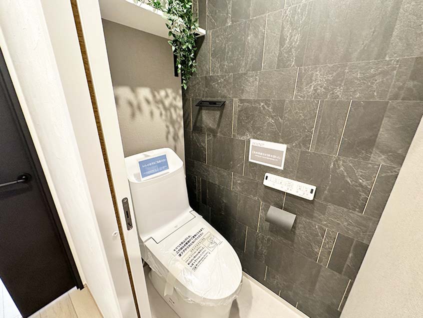 すっきりとしたフォルムのお掃除のしやすい一体型トイレ