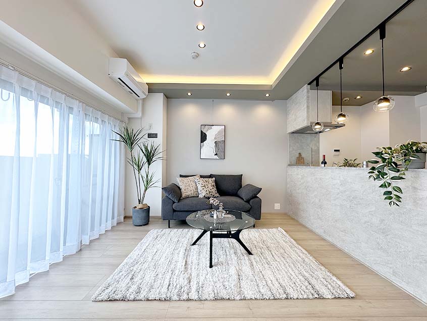 - 給水・給湯配管新規交換 ユニットバス新規交換 システムキッチン新規交換 洗面化粧台新規交換 トイレ新規交換 防水パン新規交換 給湯器新規交換 フローリング新規張替 建具新規交換 下駄箱新規交換 クロス新規張替 網戸新規張替 カーテンレール新規交換 レースカーテン新規取付 浴室換気乾燥機新規取付 食洗機新規取付 洗面室換気扇新規交換 洗浄便座新規取付 トイレ換気扇新規交換 洗濯水栓新規交換 木部塗装 照明器具新規交換 煙感知器新規取付 分電盤新規交換 スイッチ・コンセント新規交換 人感センサー新規取付 ハウスクリーニング フロアタイル新規張替 その他(エアコン1台設置済、コートフック設置済、ホスクリーン設置済、ピクチャーレール設置済)