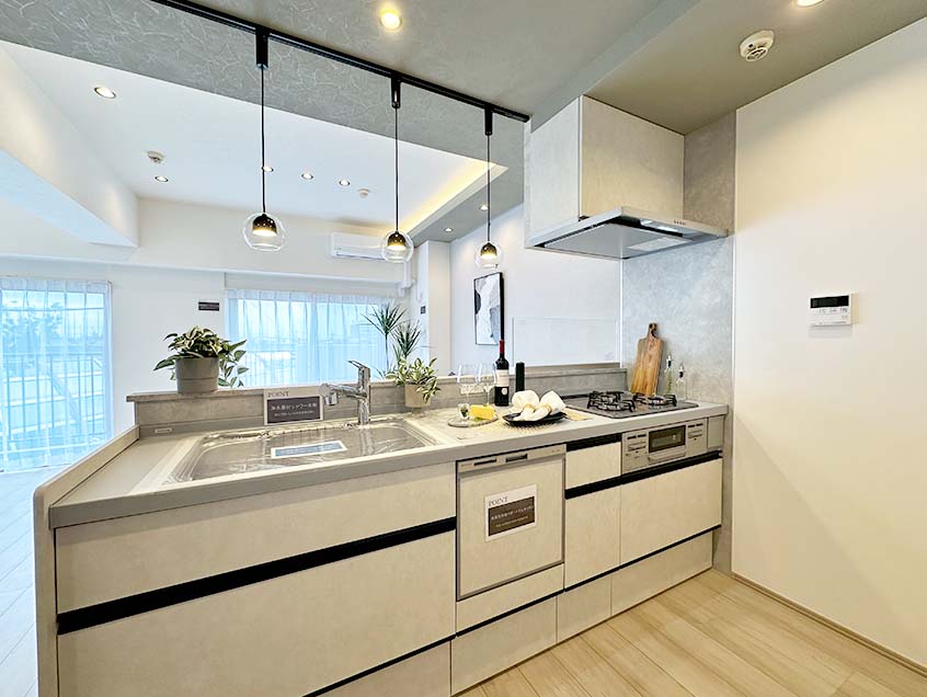 ■食器洗浄機・浄水器付き水栓を備えた対面式キッチン