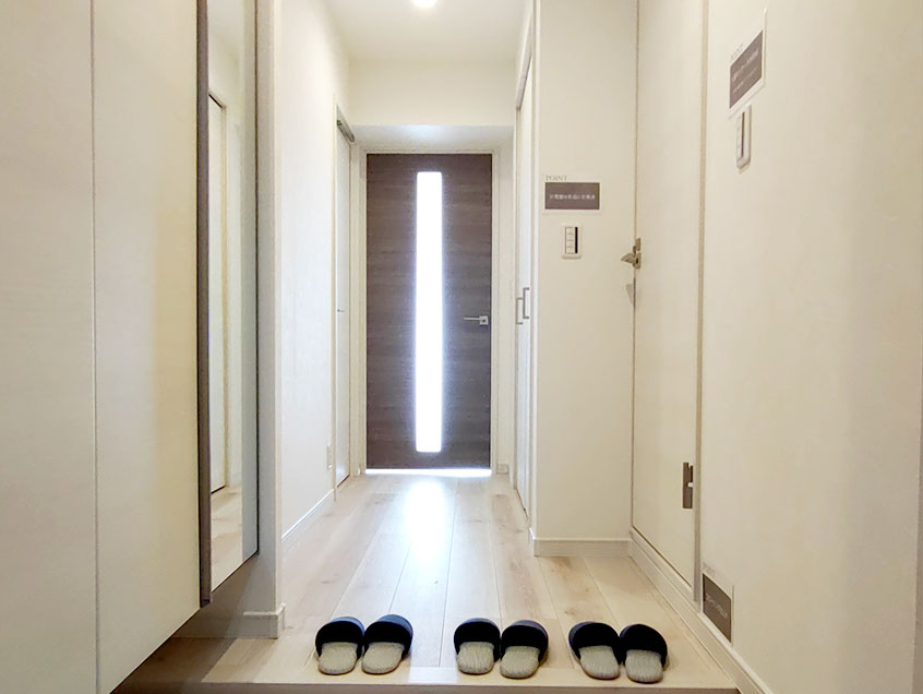 玄関には全身ミラー付きの大容量のシューズボックスがあります