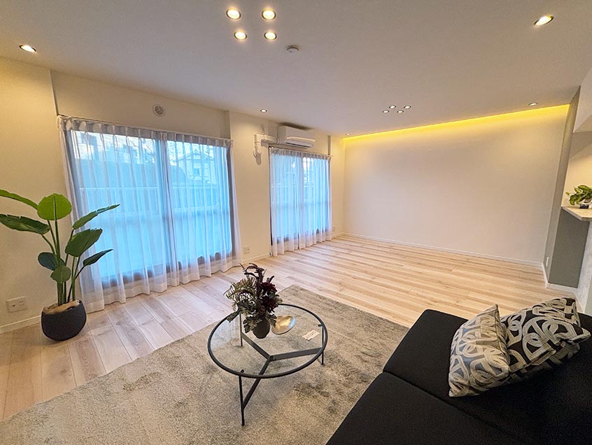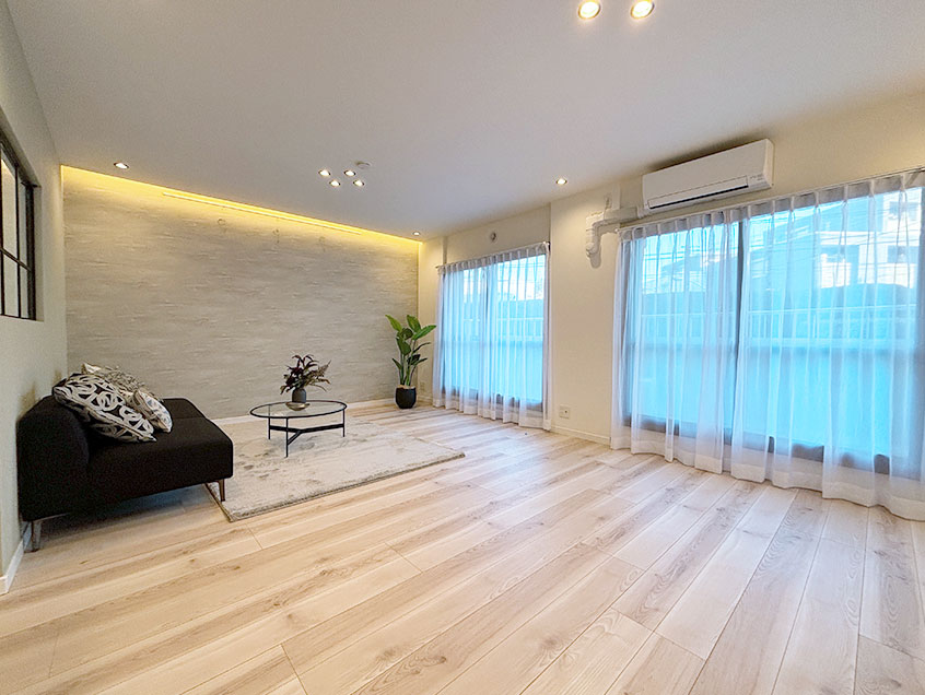 - ユニットバス新規交換 システムキッチン新規交換 洗面化粧台新規交換 トイレ新規交換 防水パン新規交換 給湯器新規交換 フローリング新規張替 建具新規交換 下駄箱新規交換 クロス新規張替 網戸新規張替 カーテンレール新規交換 レースカーテン新規取付 浴室換気乾燥機新規取付 食洗機新規取付 洗浄便座新規取付 トイレ換気扇新規交換 洗濯水栓新規交換 木部塗装 照明器具新規交換 煙感知器新規取付 分電盤新規交換 スイッチ・コンセント新規交換 人感センサー新規取付 ハウスクリーニング フロアタイル新規張替 (エアコン1台設置済、コートフック設置済、ホスクリーン設置済、ピクチャーレール設置済