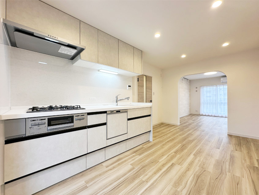 - 給水・給湯配管新規交換 ユニットバス新規交換 システムキッチン新規交換 洗面化粧台新規交換 トイレ新規交換 防水パン新規交換 給湯器新規交換 建具新規交換 下駄箱新規交換 クロス新規張替 網戸新規張替 カーテンレール新規交換 レースカーテン新規取付 浴室換気乾燥機新規取付 ガスコンロ新規交換 レンジフード新規交換 食洗機新規取付 トイレ換気扇新規交換 洗濯水栓新規交換 木部塗装 照明器具新規交換 煙感知器新規取付 分電盤新規交換 スイッチ・コンセント新規交換 人感センサー新規取付 ハウスクリーニング フロアタイル新規張替 その他(エアコン1台設置済、コートフック設置済、ホスクリーン設置済、ピクチャーレール設置済