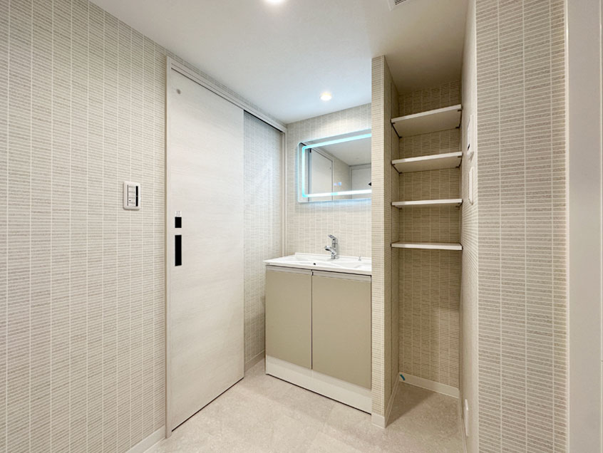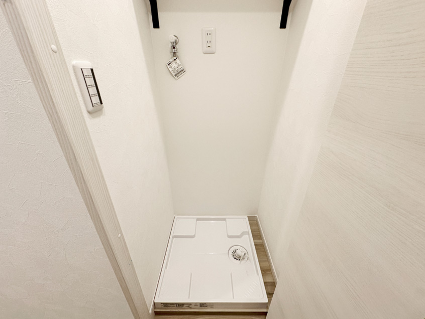 洗濯機置き場が洗面スペースの外側にあり生活感を隠せます