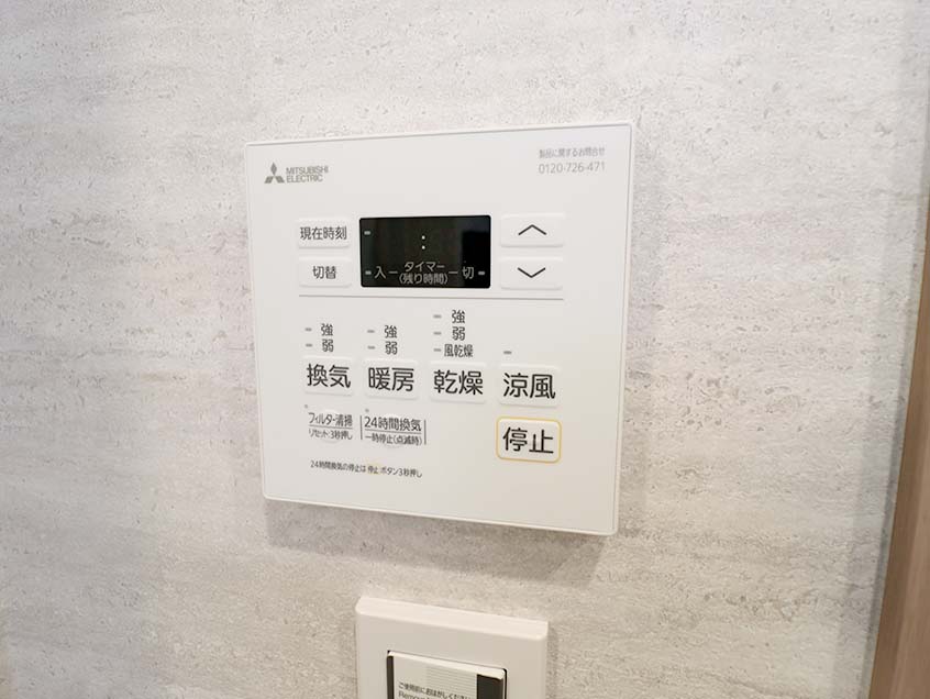 浴室乾燥機付きで雨の日の洗濯も安心です