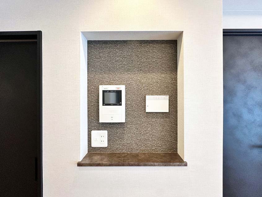 ニッチには訪問者を確認できるモニター付きインターホン