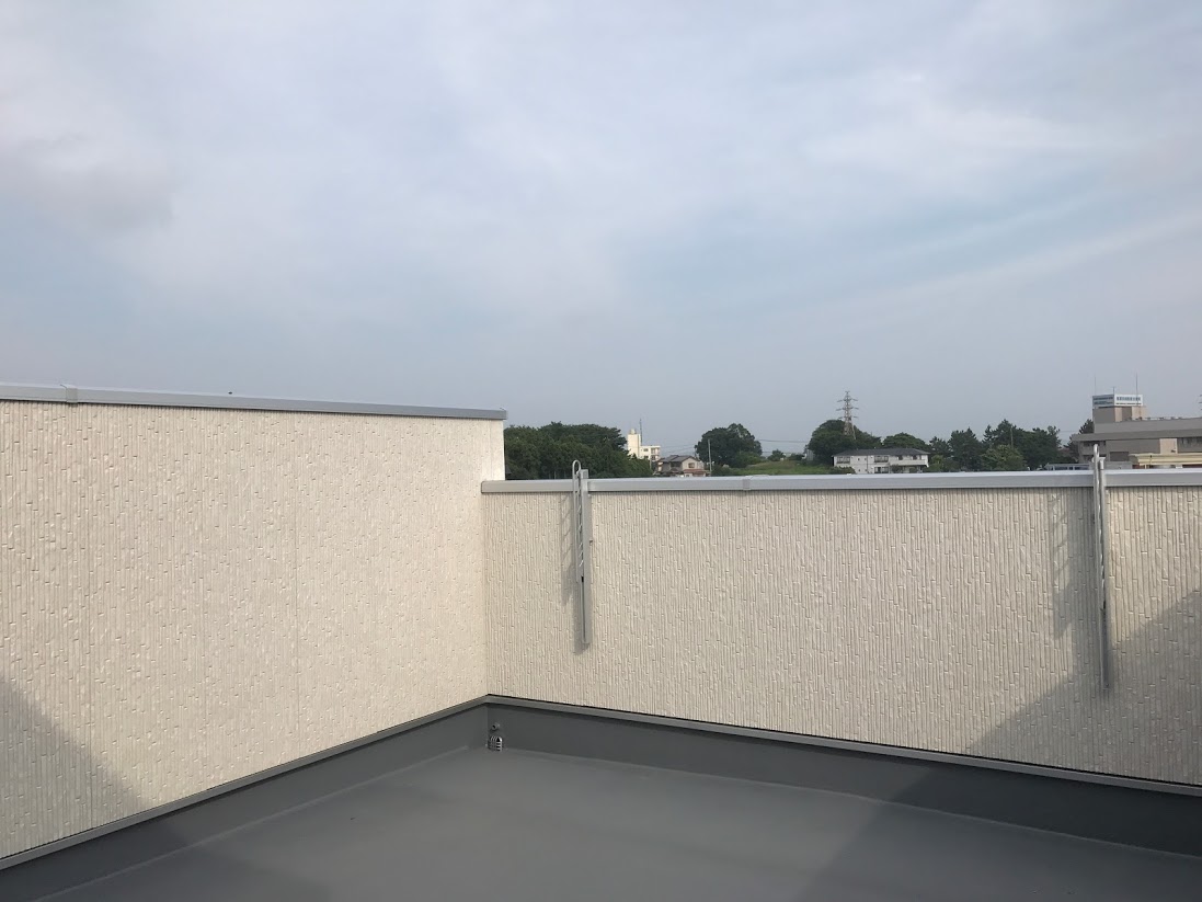 2階から階段で上がるバルコニーは太陽が近く広々した空間