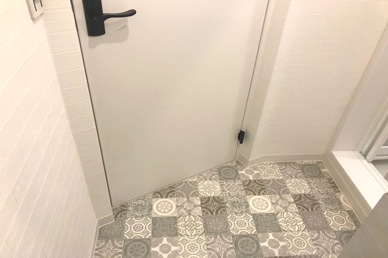 センスの良いタイル調のクッションフロアを採用