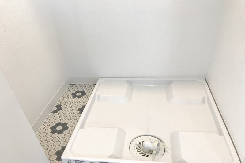 洗濯機置場の防水パンを新規設置済み