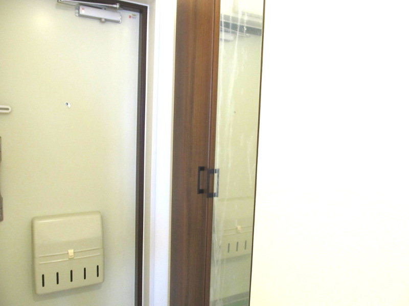 シューズボックスには外出時に全身チェックができる鏡付き