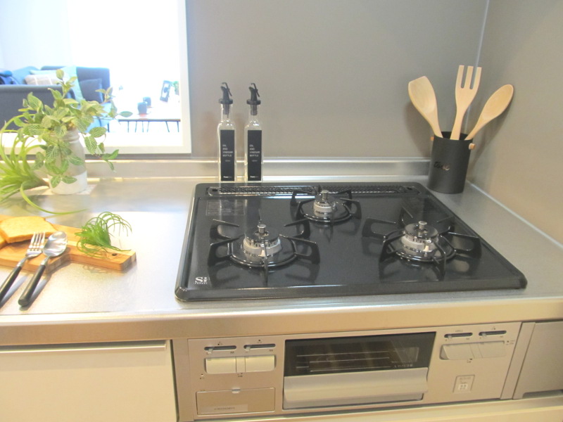 料理がはかどる3つ口コンロ、浄水器付き!