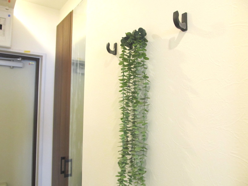 玄関にはコートや帽子等が掛けられるコートフックを設置