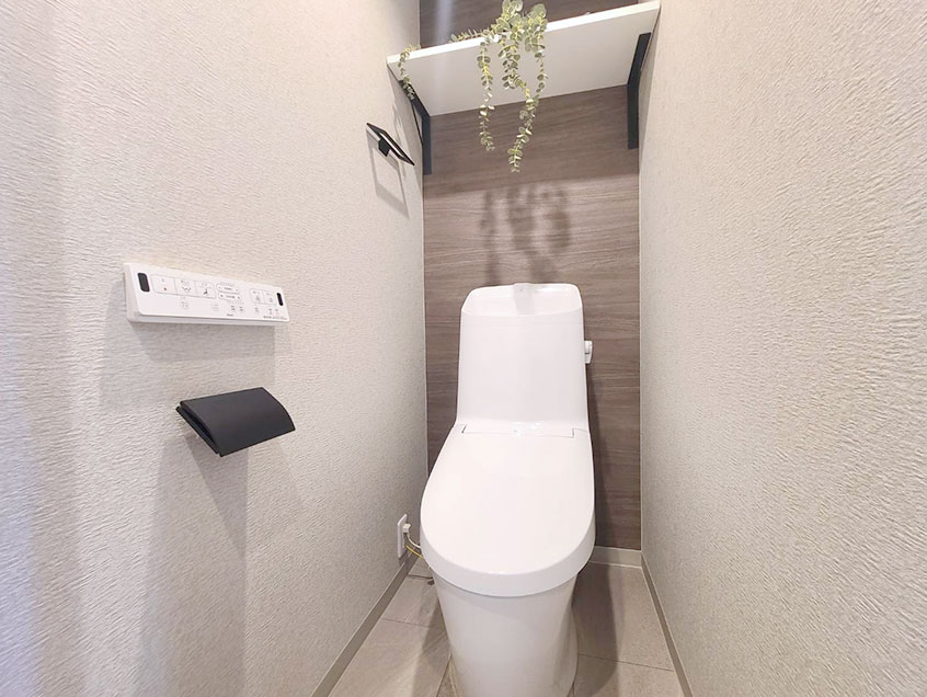すっきりとしたフォルムのお掃除のしやすい一体型トイレ