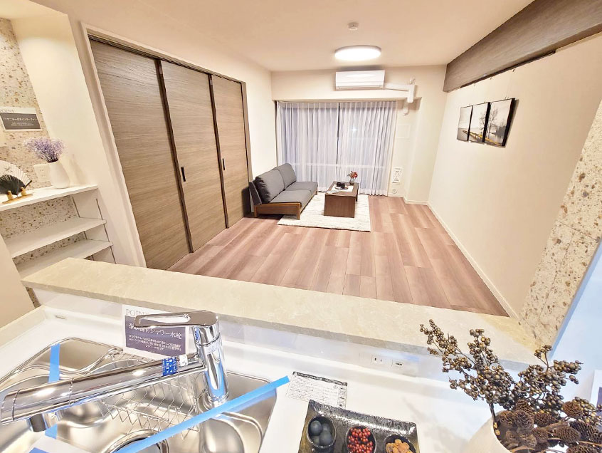 - 給水・給湯配管新規交換 ユニットバス新規交換 システムキッチン新規交換 洗面化粧台新規交換 トイレ新規交換 防水パン新規交換 給湯器新規交換 フローリング新規張替 建具新規交換 下駄箱新規交換 クロス新規張替 網戸新規張替 カーテンレール新規交換 レースカーテン新規取付 浴室換気乾燥機新規取付 食洗機新規取付 洗面室換気扇新規交換 洗浄便座新規取付 トイレ換気扇新規交換 洗濯水栓新規交換 木部塗装 照明器具新規交換 煙感知器新規取付 分電盤新規交換 スイッチ・コンセント新規交換 人感センサー新規取付 ハウスクリーニング フロアタイル新規張替 その他(エアコン1台設置済、コートフック設置済、洗濯物干しワイヤー設置済、ピクチャーレール設置済