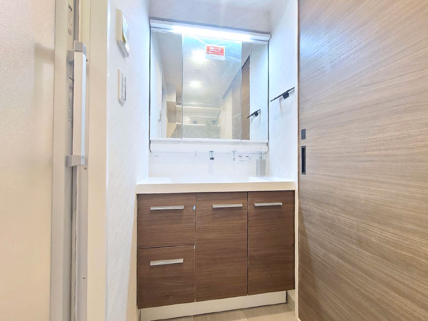 3面ミラーやLEDライト付きの収納力のある洗面台