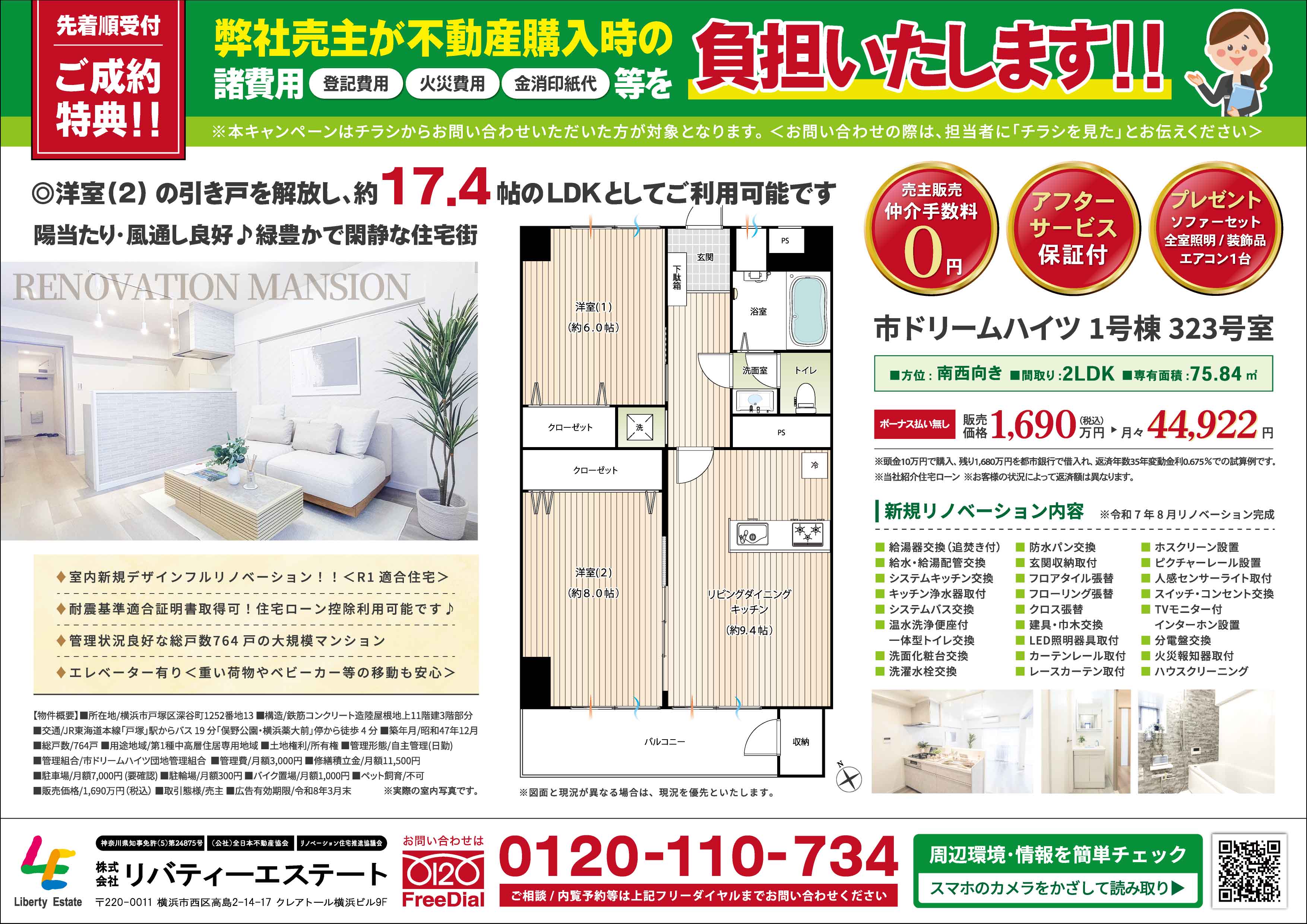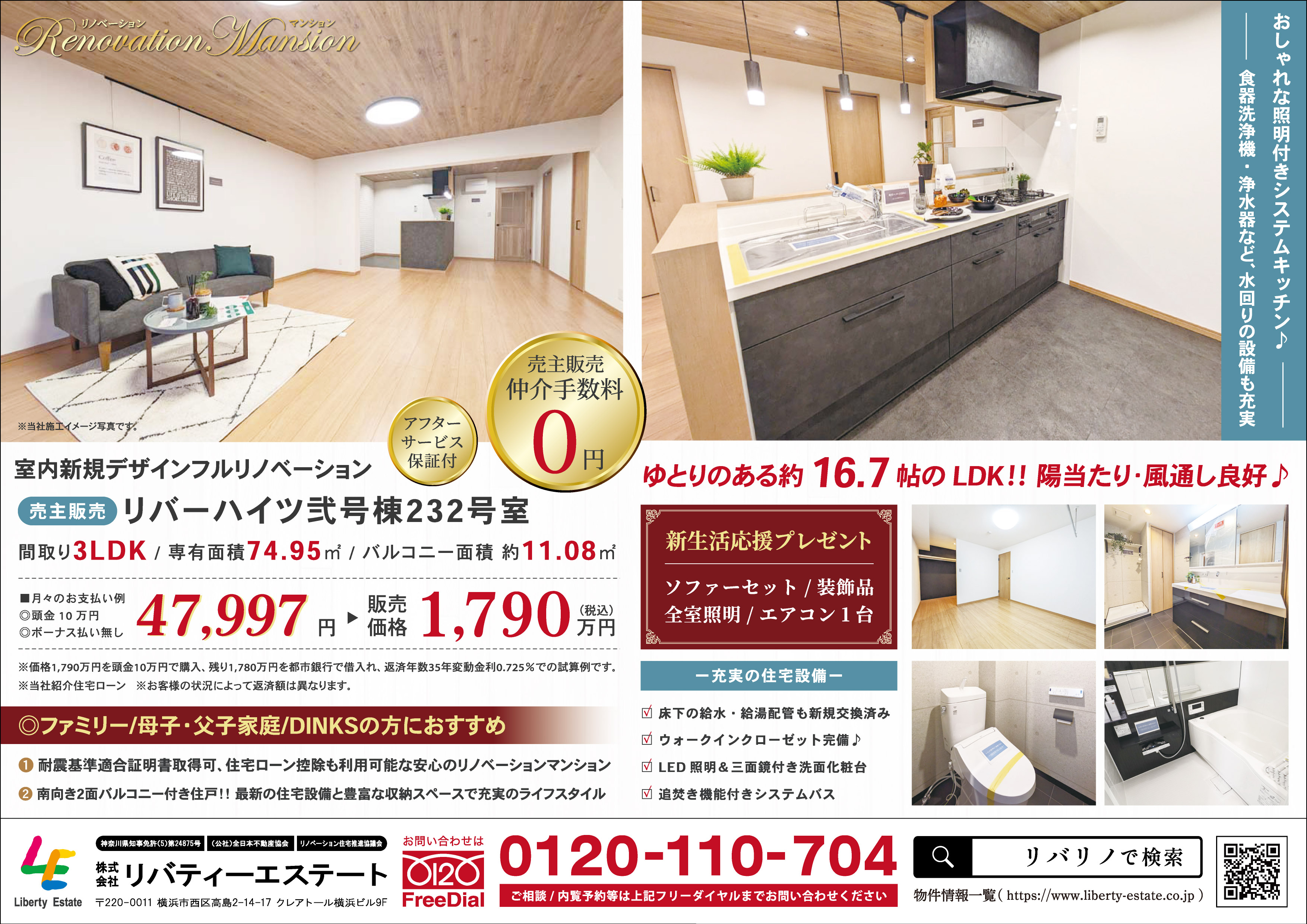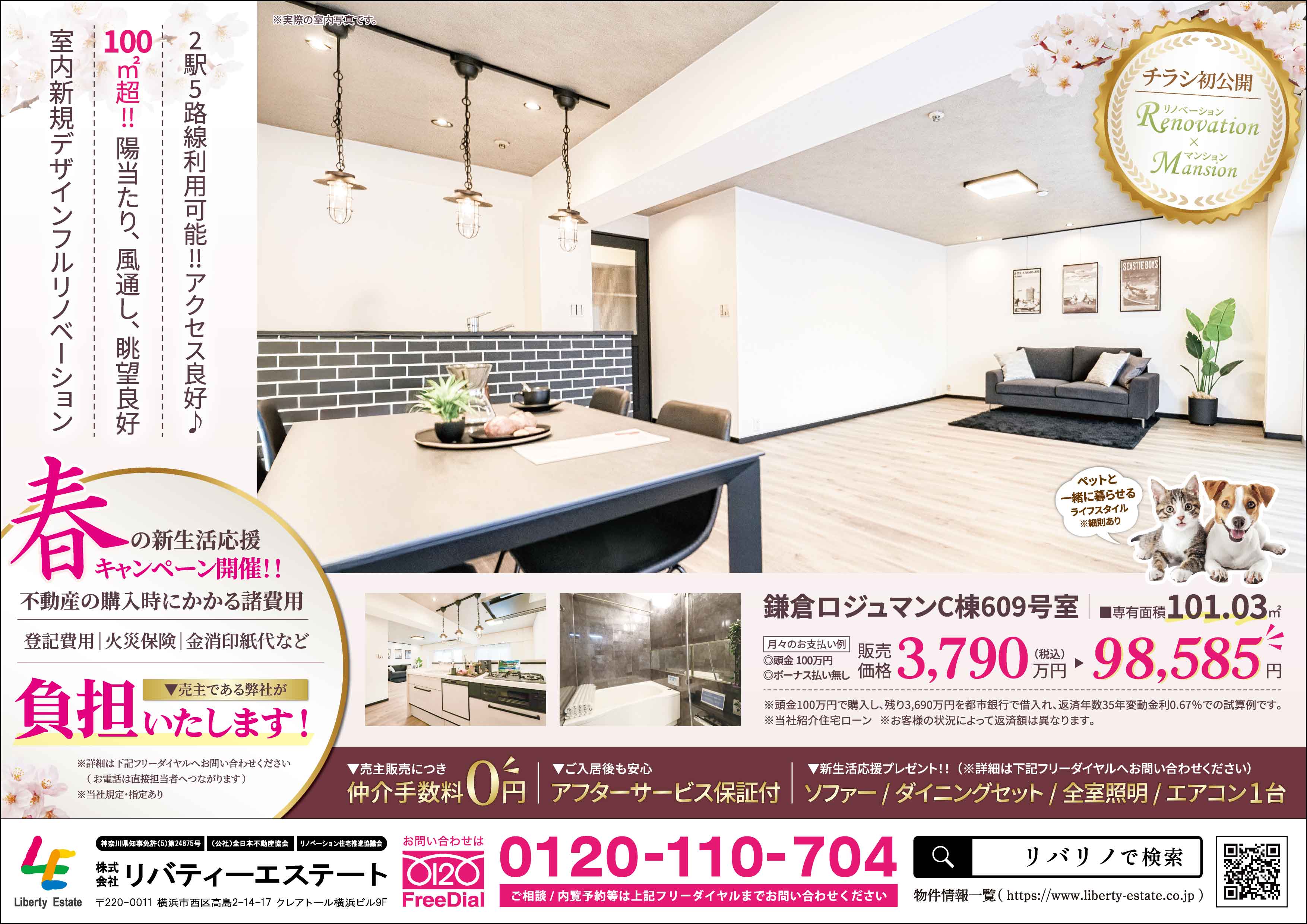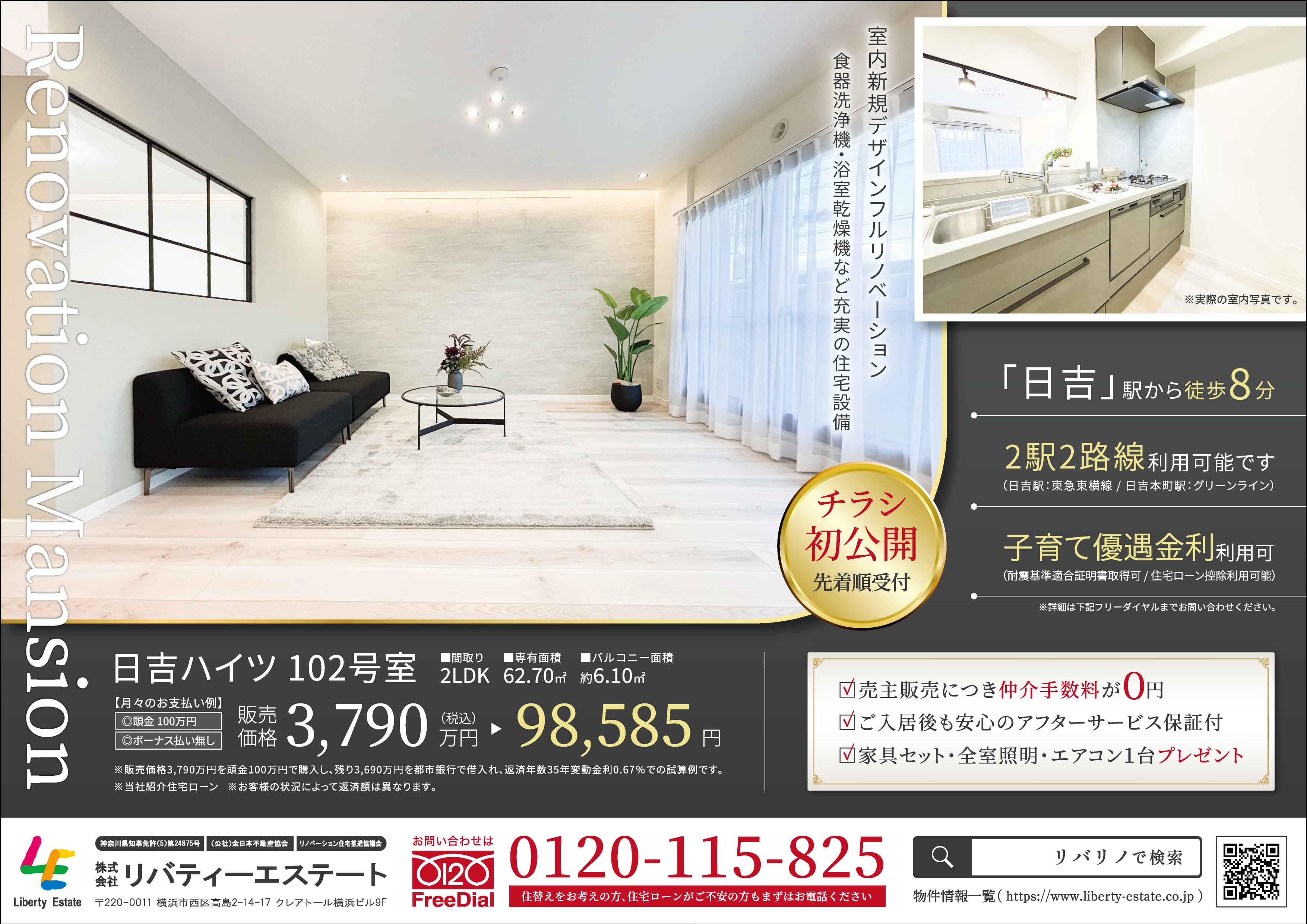 チラシ初公開!エレベーター完備の管理体制良好なマンション。食洗機や浴室乾燥機付きの充実設備、フルリノベ済2SLDK!