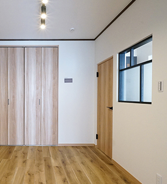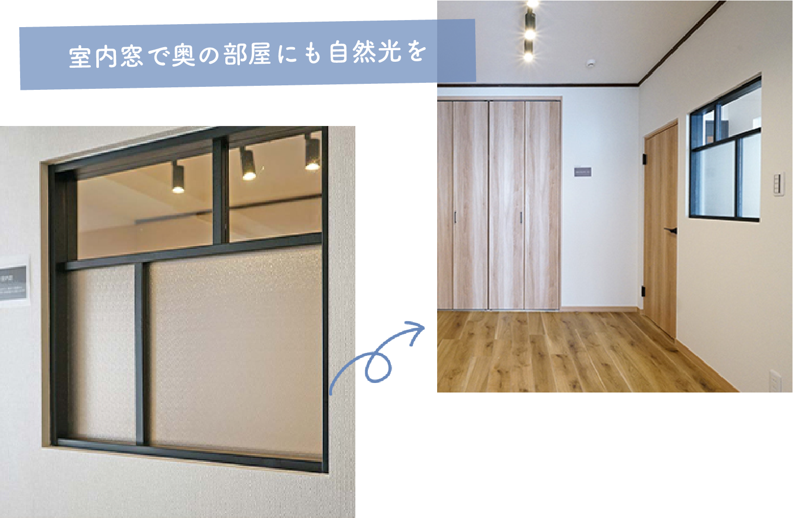 リノベーションで発生してしまった、窓のないお部屋も室内窓で採光を確保して明るいお部屋に。